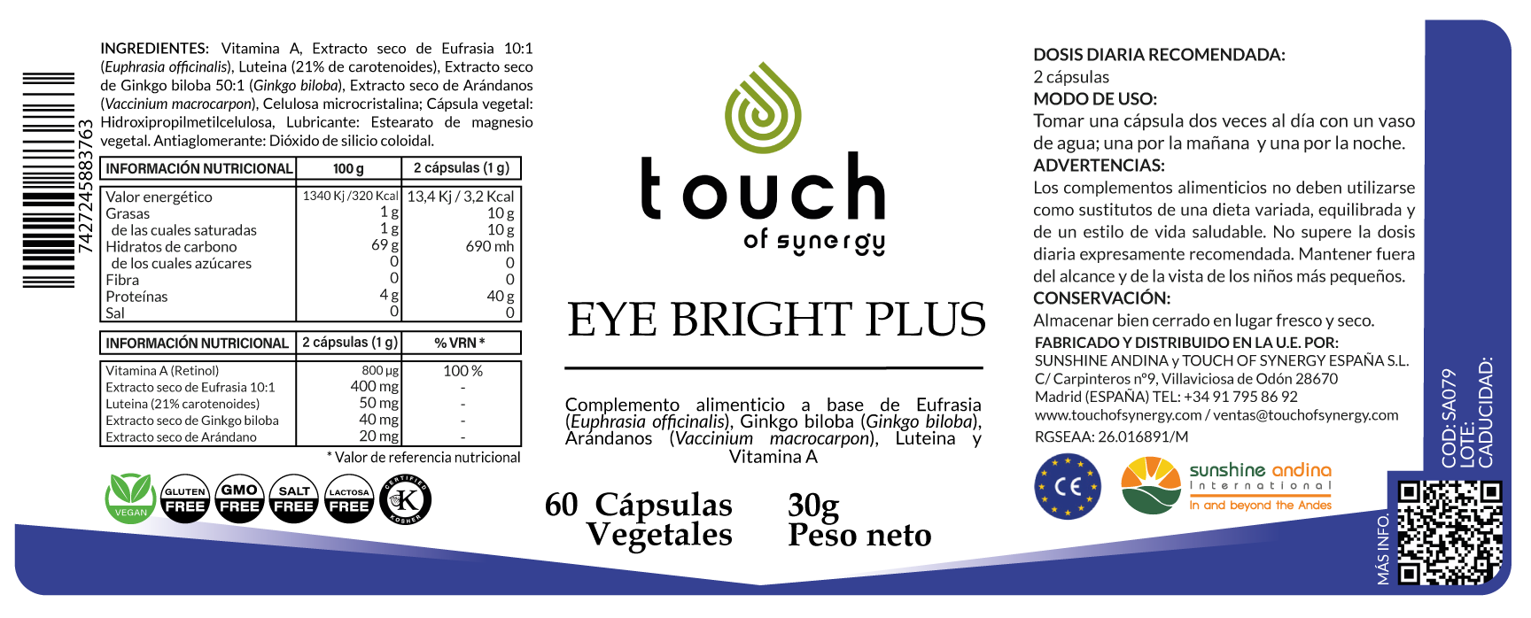 Eye Bright Plus está diseñado para ser un apoyo diario, ayudando a mantener una visión clara y saludable a lo largo del tiempo, y es especialmente útil para quienes desean prevenir o tratar problemas oculares de manera natural y efectiva.