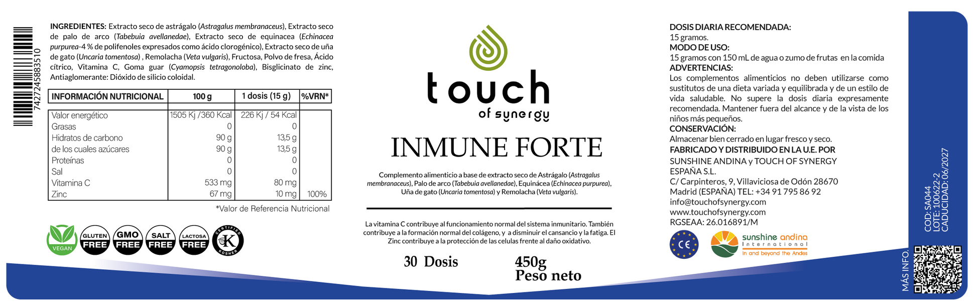 - Inmune Forte no solo se centra en el refuerzo del sistema inmunológico, sino que también ayuda en la formación del colágeno y reduce el cansancio y la fatiga, ofreciendo así una solución integral para el bienestar general.