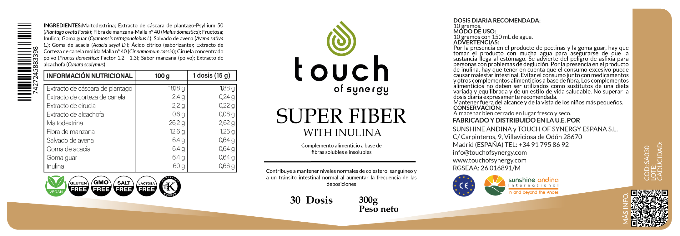 - Fórmula Integral: Nuestro producto, SUPER FIBER CON INULINA, ofrece una fórmula integral diseñada para abordar múltiples aspectos de la salud digestiva y el bienestar general. Con una combinación de ingredientes naturales como extracto de cáscara de plantago-psyllium, fibra de manzana, inulina y extracto de alcachofa, proporciona un enfoque completo para regular el peso, mejorar el tránsito intestinal y reducir la inflamación abdominal.