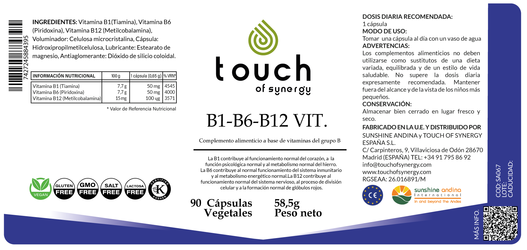 Es un suplemento nutricional que concentra la máxima cantidad de estas tres vitaminas esenciales en una sola cápsula. Este producto está formulado con Vitamina B1 (Tiamina), Vitamina B6 (Piridoxina) y Vitamina B12 (Metilcobalamina), nutrientes clave que desempeñan funciones vitales en el cuerpo. Este suplemento está diseñado para apoyar el metabolismo energético, la función neurológica y la salud muscular y articular, siendo una opción completa para el bienestar general.